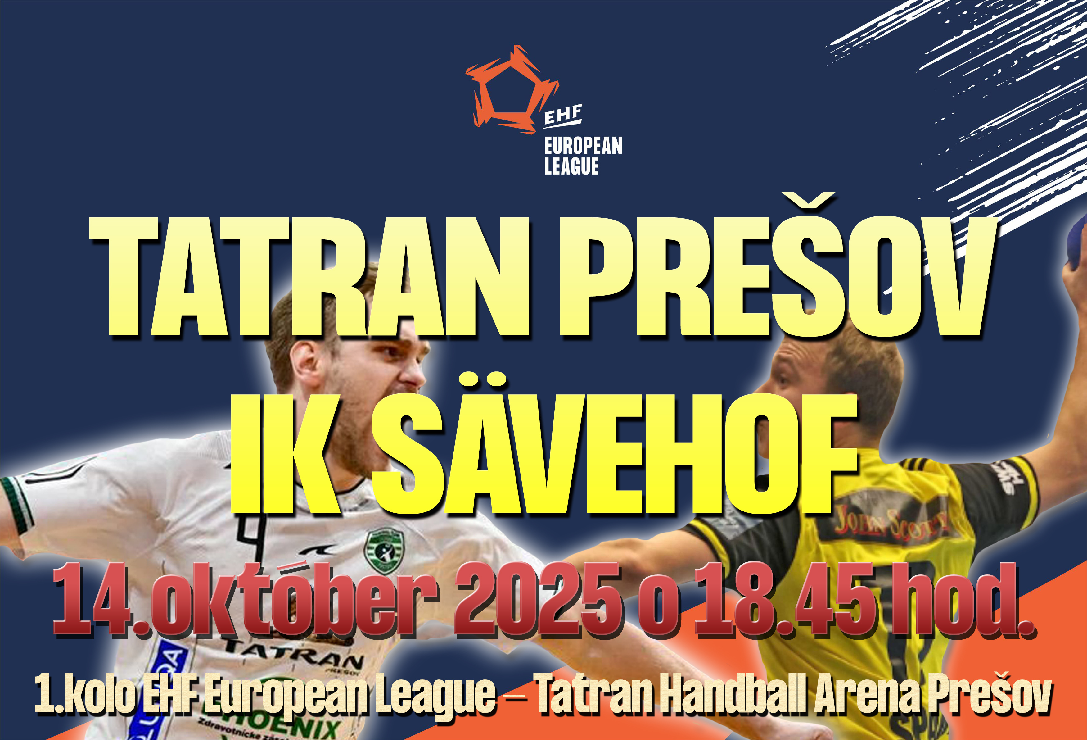 Úvodný duel G-skupiny Európskej ligy EHF, ktorý bude rozhodovať dvojica z Bosny a Hercegoviny Tatjana Praštalo a Vesna Balvan, má v utorok 14. októbra začiatok stanovený na 18:45 hod. Brány Tatran handball arény sa otvoria dve hodiny pred duelom. Fanúšikov upozorňujeme na začiatok dopravných obmedzení v súvislosti s prácami na blízkom moste na ul. Jána Pavla II., ktorý je uzavretý a nedá sa cez neho prejsť. Potrebné je využiť obchádzkové trasy.