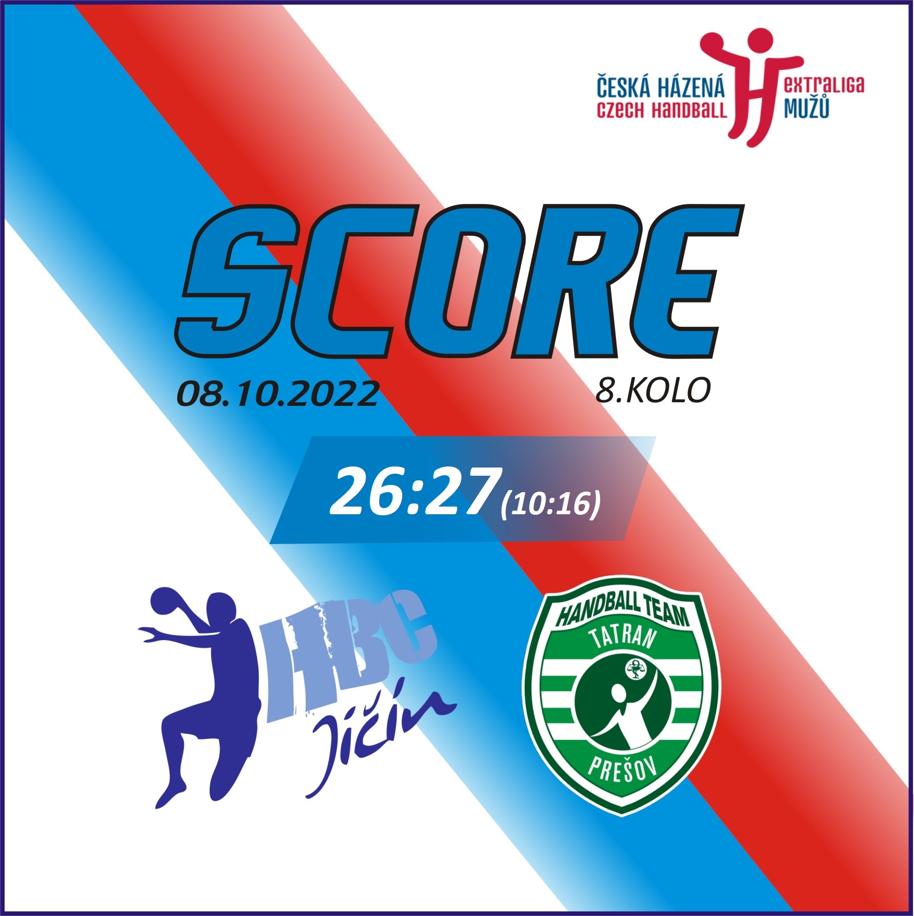 ČR – 8. kolo: HBC Jičín - Tatran Prešov 26:27 (10:16)