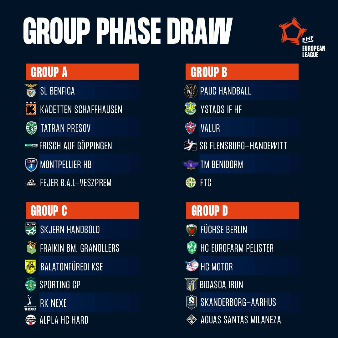 Z vopred nasadených tímov Tatran, ktorý bol takisto medzi 12-tkou klubov s priamou účasťou v skupinovej fáze súťaže, dostal z prvého koša obhajcu triumfu v Európskej lige, víťaza domáceho Superpohára a v „nadupanej“ portugalskej súťaži v minulom roku v poradí tretí tím súťaže za majstrovským Portom a druhým Sportingom – tím SL Benfica. Nasadeným tímom v druhom koši bol švajčiarsky majster Kadetten Schaffhausen, ktorý vo finále domácej súťaže v minulej sezóne zdolal nášho minuloročného súpera z Európskej ligy Pfadi Winterthur. Tento tím sme dokázali v tabuľke, vtedy rovnako A-skupiny predchádzajúceho ročníka súťaže, preskočiť záverečným víťazstvom na jeho palubovke.