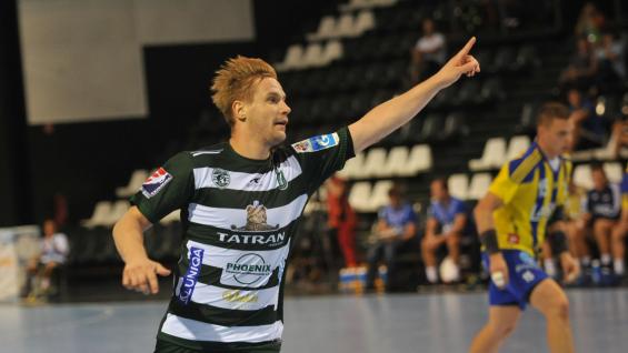 Text k fotu: Jakub Hrstka bol streleckým lídrom Tatrana Prešov so 7 gólmi pri výhre 34:22 na palubovke bratislavského ŠKP.