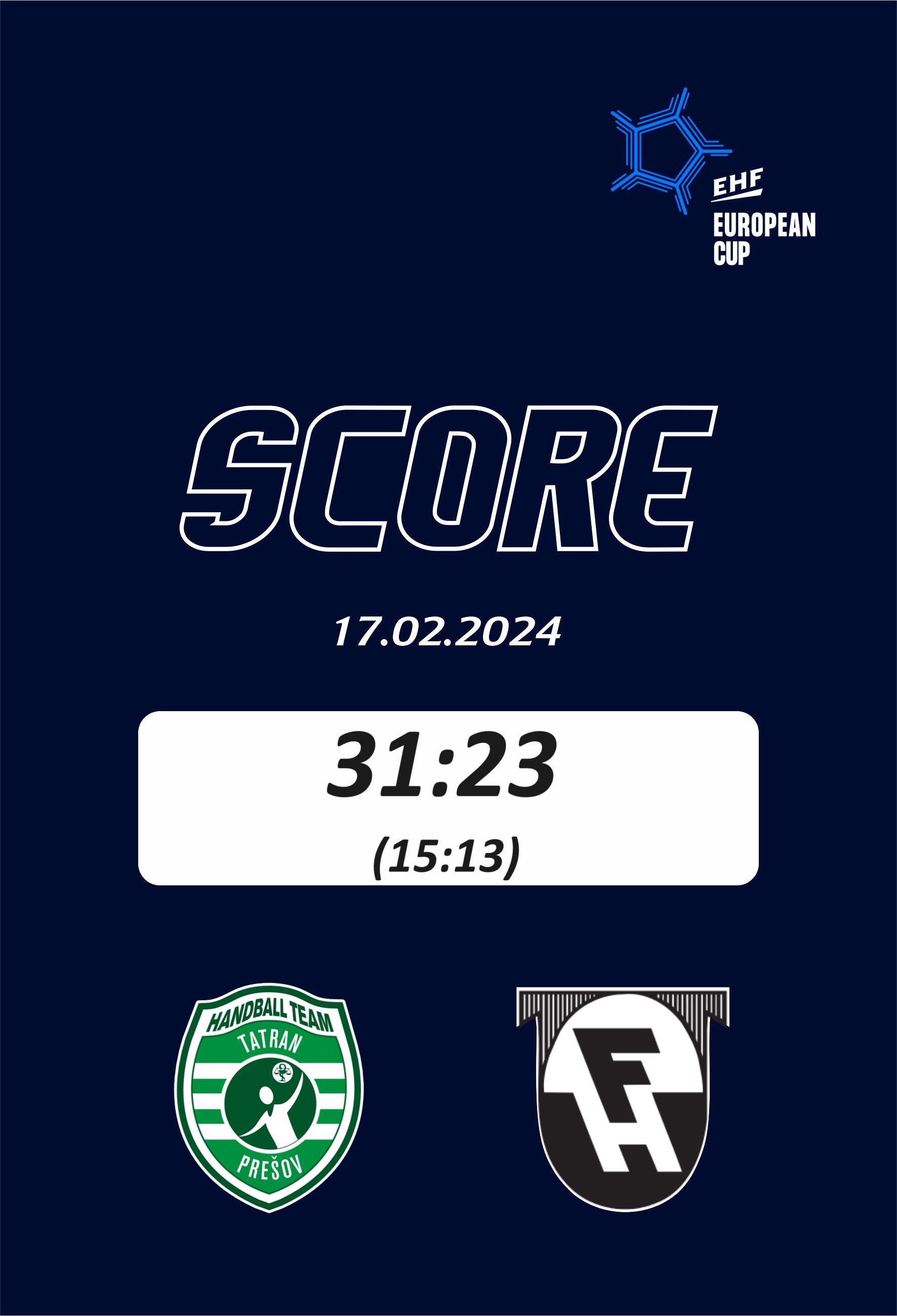 EP – osemfinále (2. zápas): Tatran Prešov - FH Hafnarfjördur 31:23 (15:13), prvý zápas 35:30, postupuje Tatran
