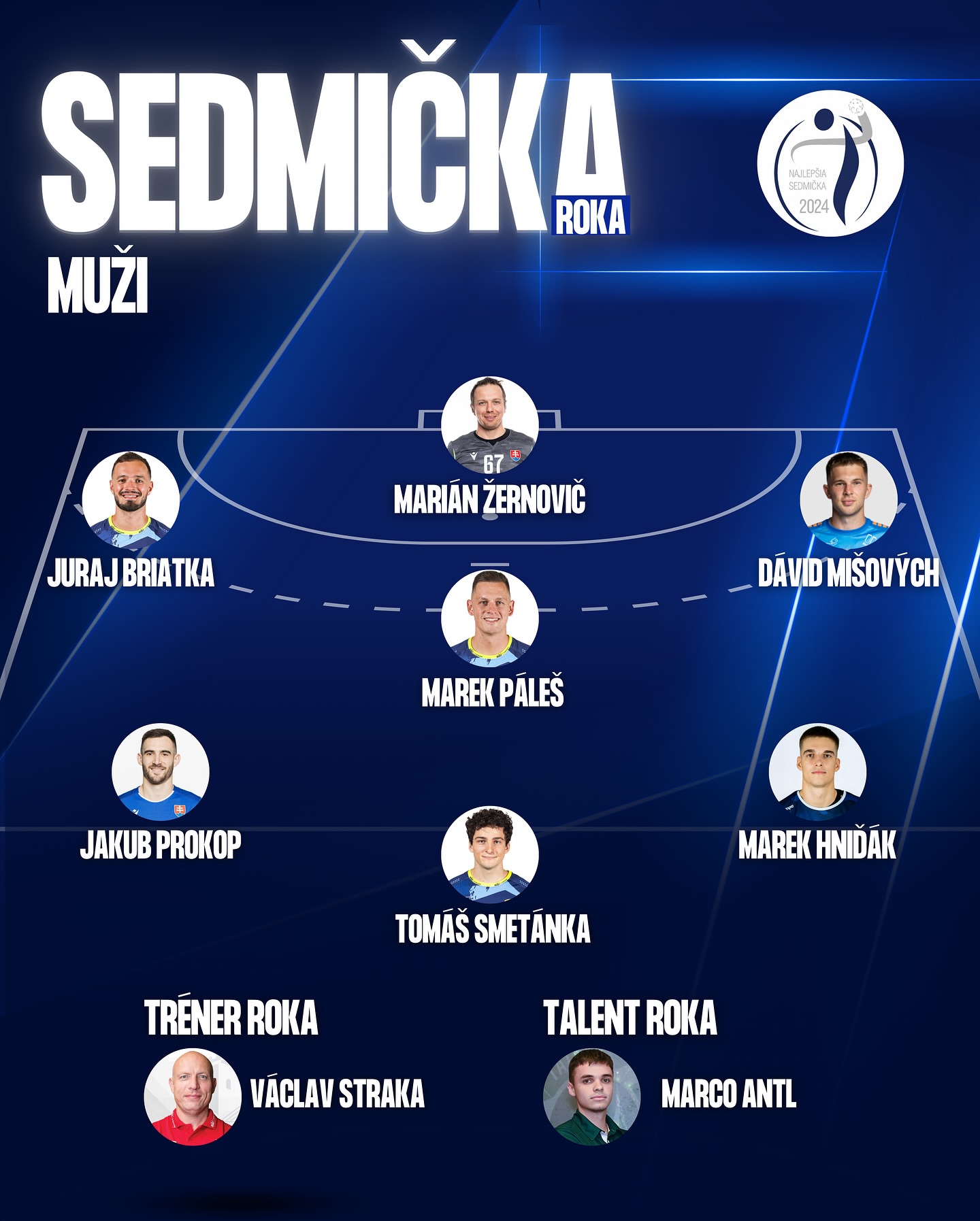 Mužská sedmička roka 2024 dopadla podľa hlasovania fanúšikov takto - ľavé krídlo Juraj Briatka, ľavá spojka Jakub Prokop, stredná spojka Tomáš Smetánka, pravá spojka Marek Hniďák, pravé krídlo Dávid Mišových, pivot Marek Páleš, brankár Marián Žernovič. Trénerom roka sa stal Václav Straka. Cenu pre najlepšieho hráča Niké handball extraligy si prevzal Tomáš Smetánka. Cenu pre talent roka do 20 rokov udelili tréneri nášmu krídelníkovi Marcovi Antlovi.