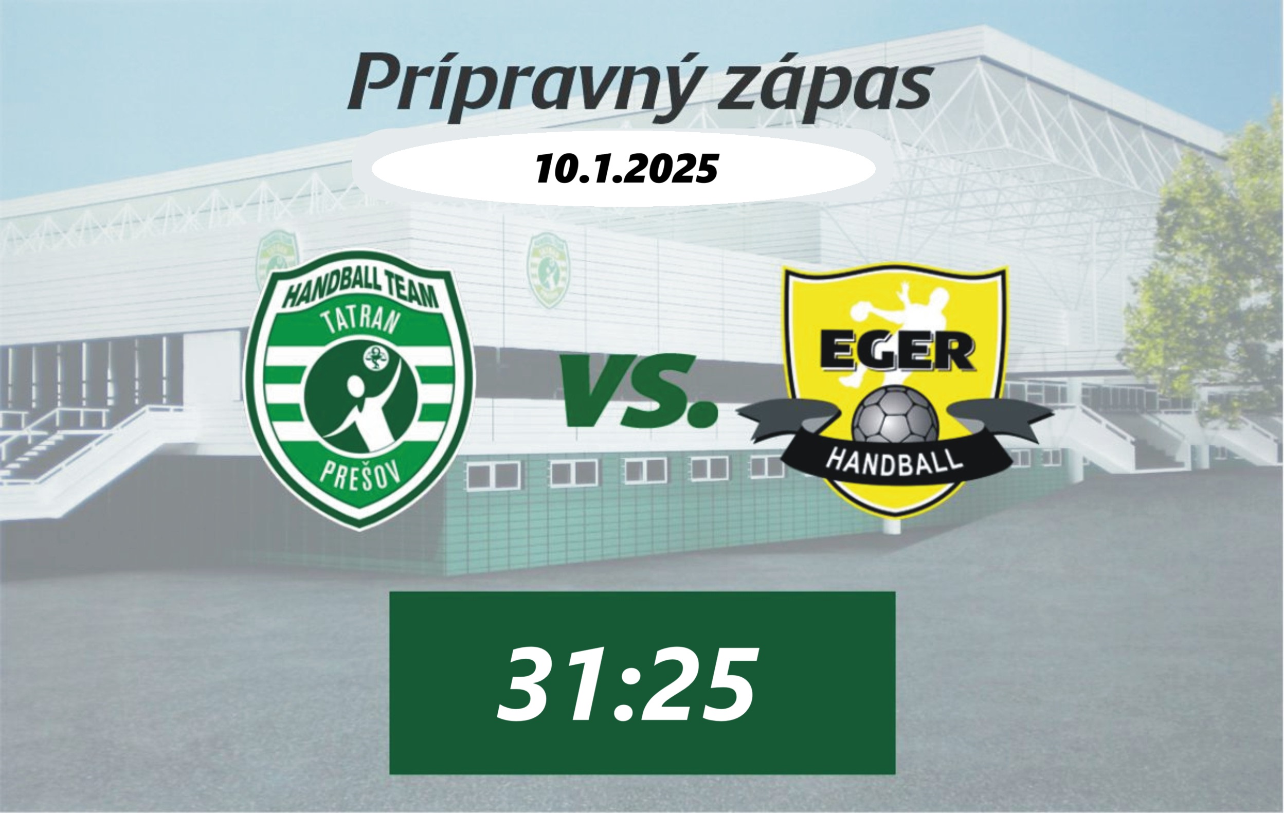 Hádzanári Tatrana Prešov zvládli úvodný zápas nového hádzanárskeho roka, keď v rámci zimnej prípravy zdolali na svojej palubovke maďarský Eger po výsledku 31:25 (14:12). Najlepším strelcom slovenského majstra v zápase proti 12. tímu maďarskej najvyššej súťaže bol Josef Hozman, autor 6 gólov.