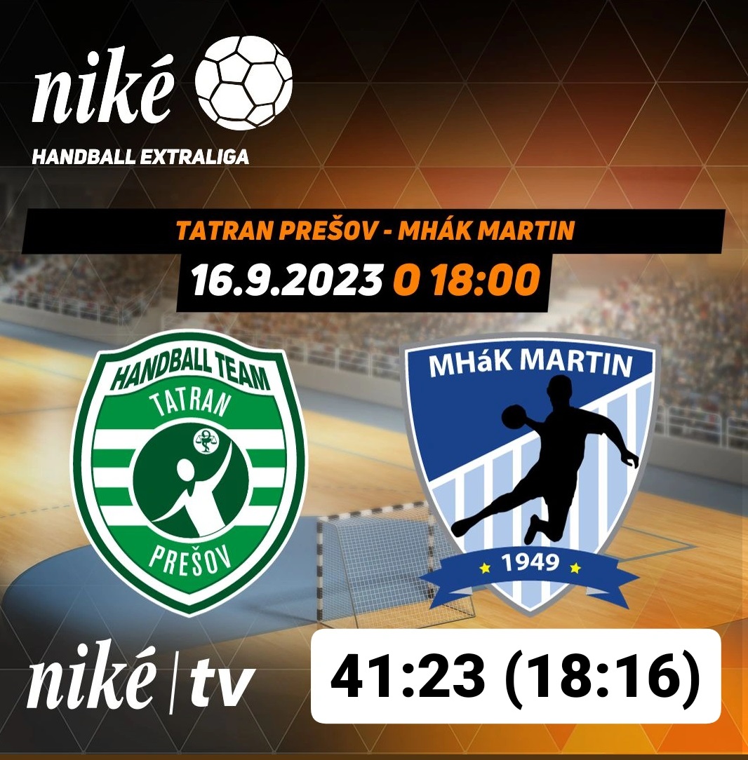 Hádzanári Tatrana Prešov zvládli aj svoje tretie vystúpenie v novej sezóne Niké handball extraligy. V domácom prostredí Tatrana handball arény zdolali tím MHáK Martin vysoko 41:23 (18:16), hoci ešte v úvode druhého dejstva bol stav zápasu vyrovnaný. Tatran tak má aj po troch zápasoch na svojom konte plný počet bodov.