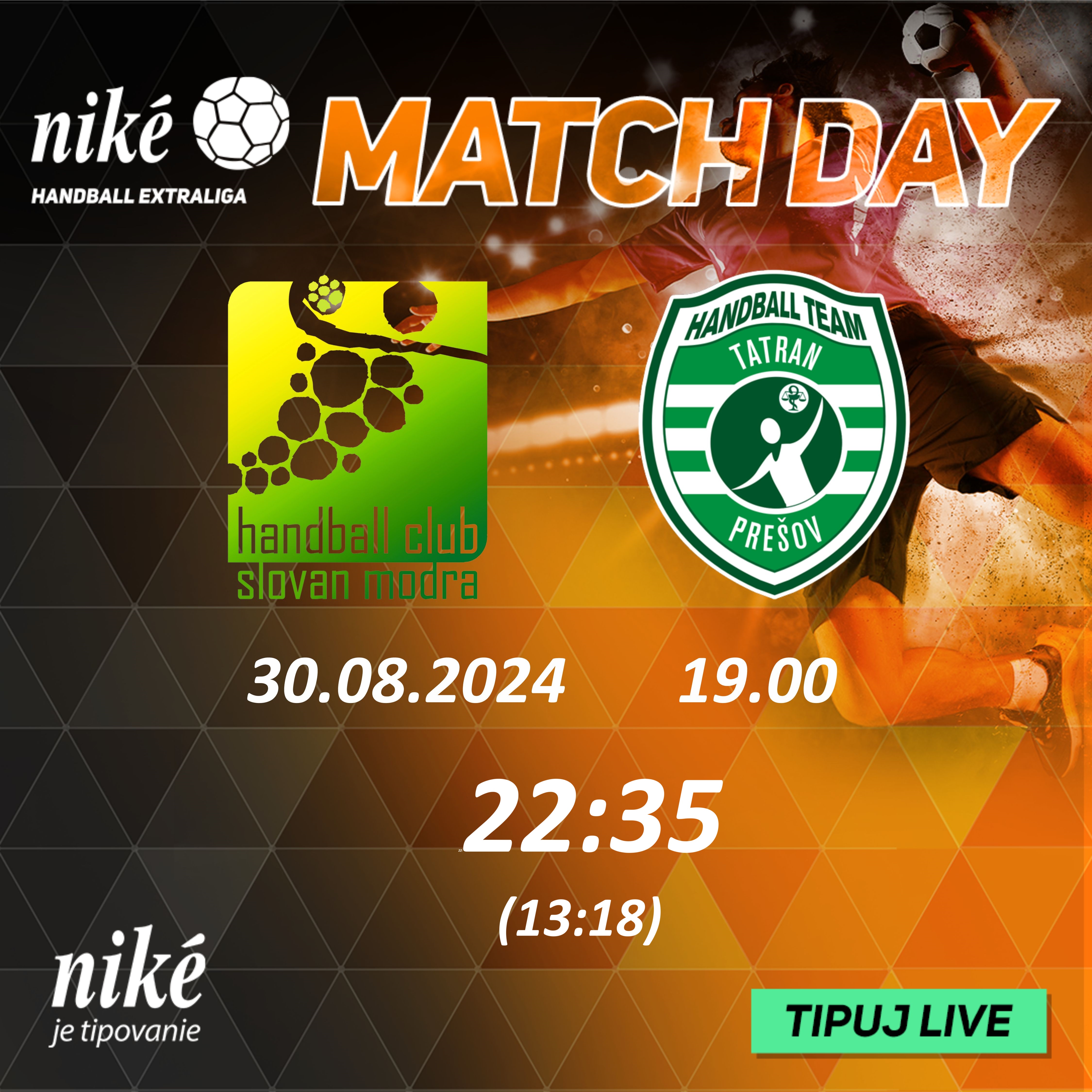 NHE – 1. kolo: HáO TJ Slovan Modra - Tatran Prešov 22:35 (13:18)