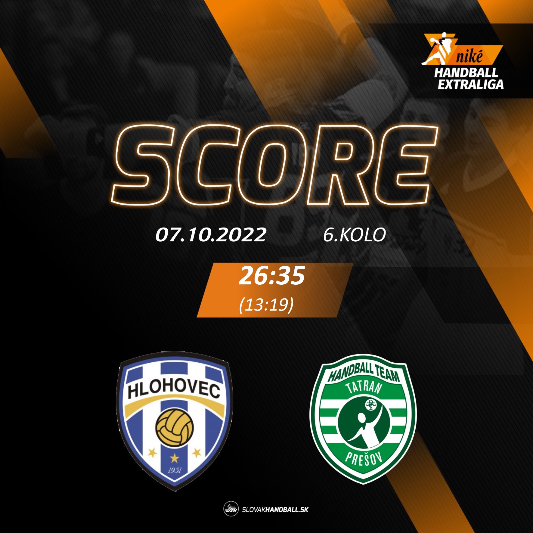 NHE – 6. kolo: Sporta Hlohovec - Tatran Prešov 26:35 (13:19)