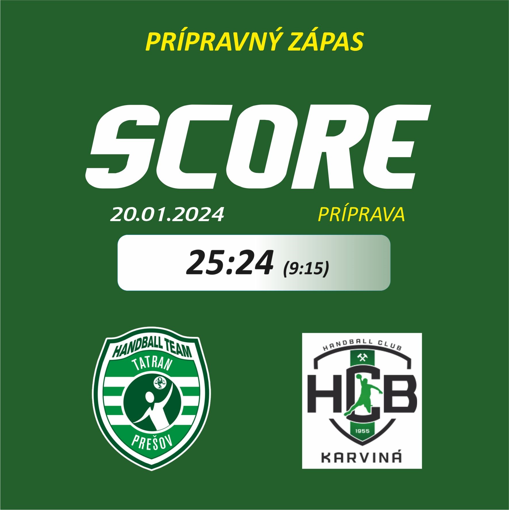 Hádzanári Tatrana Prešov odplatili v druhom prípravnom meraní síl Karvinej piatkovú tesnú prehru (28:29) a na palubovke Tatran handball arény v sobotu zdolali českého vicemajstra takisto o gól 25:24 (9:15). Duel mal veľmi podobný priebeh ako prvé stretnutie, ale v opačnom garde. Tentoraz museli likvidovať šesťgólový náskok súpera hráči Tatrana, ktorým sa to napokon podobne ako predtým Karvinej podarilo a dokázali zvíťaziť.