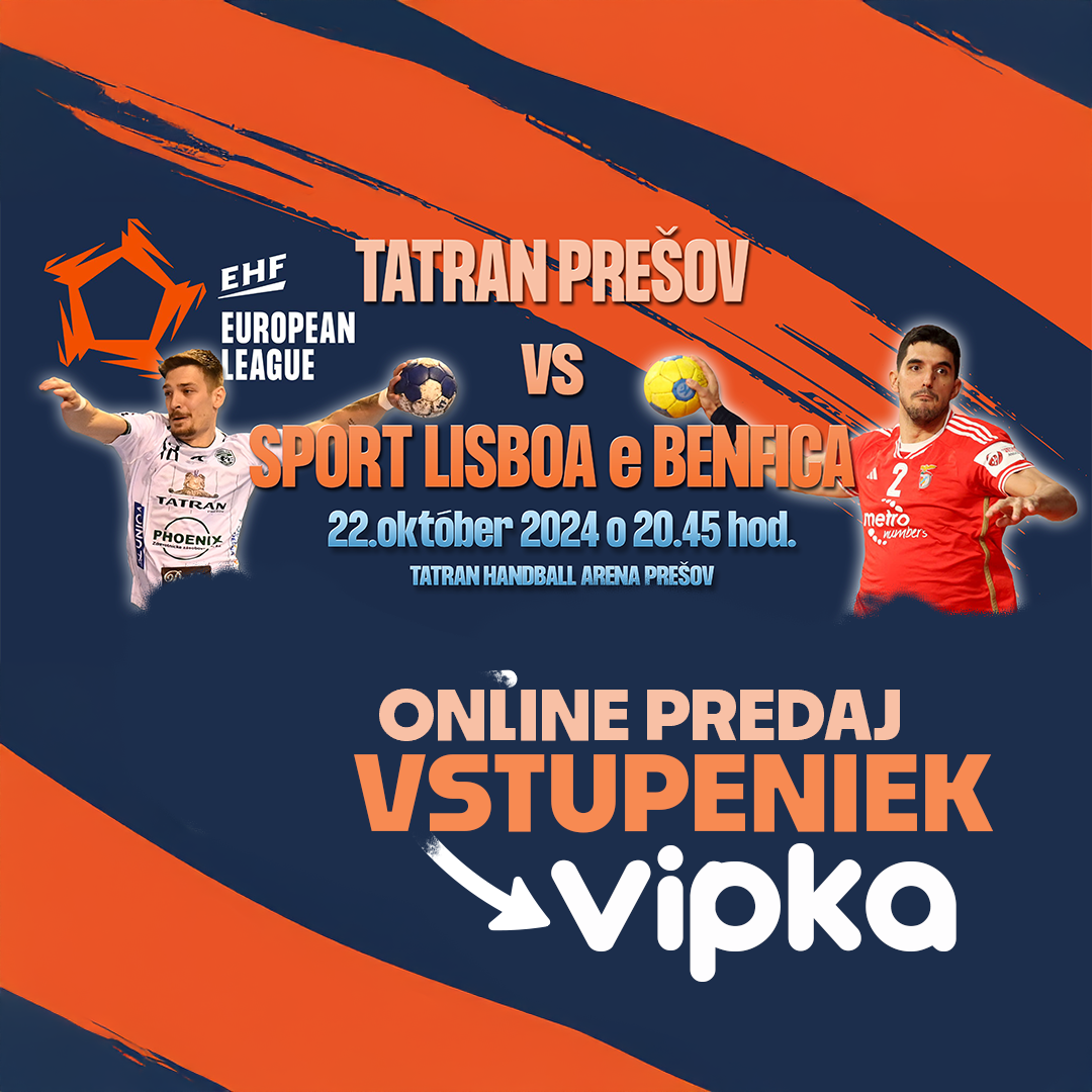 Vstupenky na tento prestížny zápas Európskej ligy EHF, ktorý sa v THA odohrá v utorok 22. októbra o 20:45 hod., si môžeš kúpiš TU: https://vipka.app/produkt/europska-liga-ehf-tatran-presov-sport-lisboa-e-benfica-22-10-2024-utorok-20-45-hod_82561