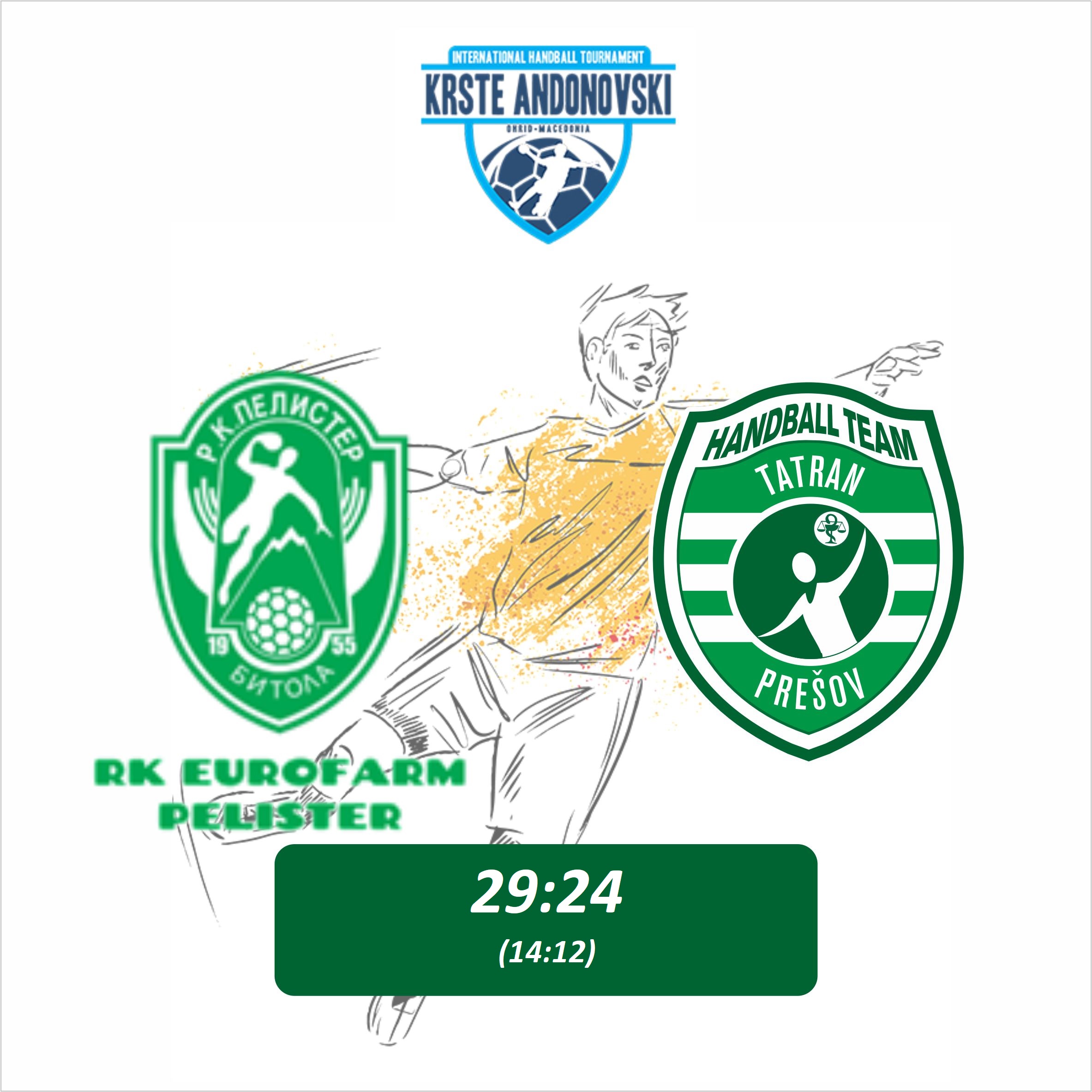 Vo svojom druhom vystúpení na hádzanárskom turnaji v severomacedónskom Ohride podľahli hádzanári nášho Tatran Prešov miestnemu majstrovi z tímu Eurofarm Pelister o päť gólov 24:29 (12:14). Tatran v prvom polčase zväčša doťahoval náskok súpera. Podarilo sa mu to ale až po zmene strán, no zápas na svoju stranu nedokázal otočiť. Naopak účastník Ligy majstrov duel v závere zlomil na svoju stranu a po víťazstve nad Butelom Skopje (32:21) si pripísal druhé víťazstvo. Tatran má na konte jeden bod za remízu (24:24) so Šabacom. Ten v tesnom súboji prehral s Butelom o gól 27:28.