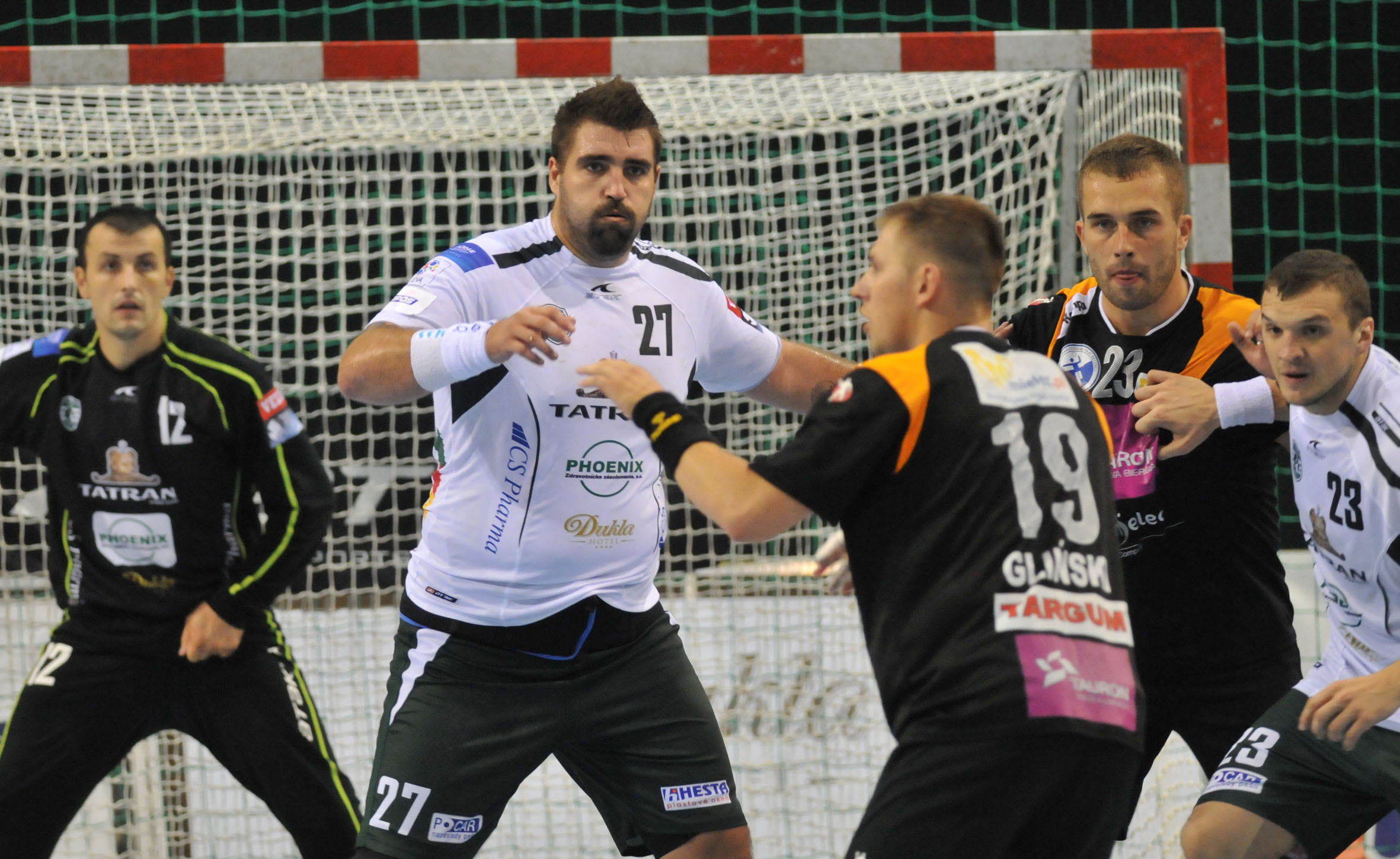 Text k foto: V obrane by mali tvrdiť muziku brankár Verkič, pivot Petro (uprostred v bielom) aj Pejovič vpravo.