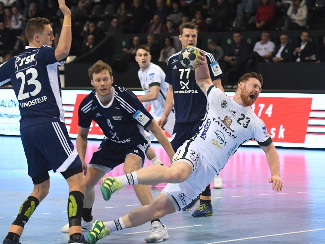 Text k fotu: Najlepším strelcom prešovského Tatrana proti Topoľčanom bol chorvátsky pivot Leon Vučko s 8 gólmi.