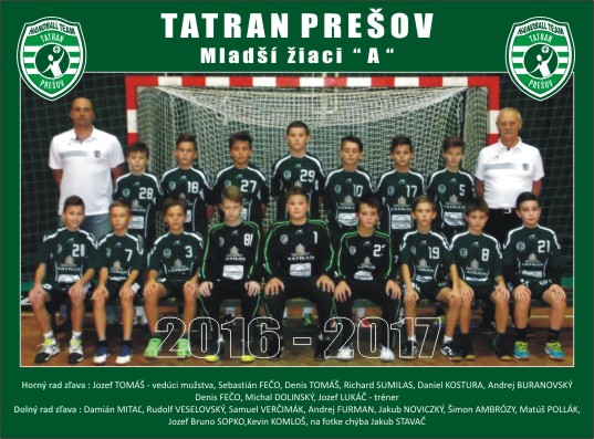 Družstvo mladších žiakov Tatrana Prešov A sa stalo suverénnym víťazom Regionálnej ligy VÝCHOD 2016/2017 a postúpilo na otvorené majstrovstvá Slovenskej republiky Slovak Open Handball U12 2017, ktoré sa uskutočnia v dňoch 9. – 11. júna 2017 v Stupave.